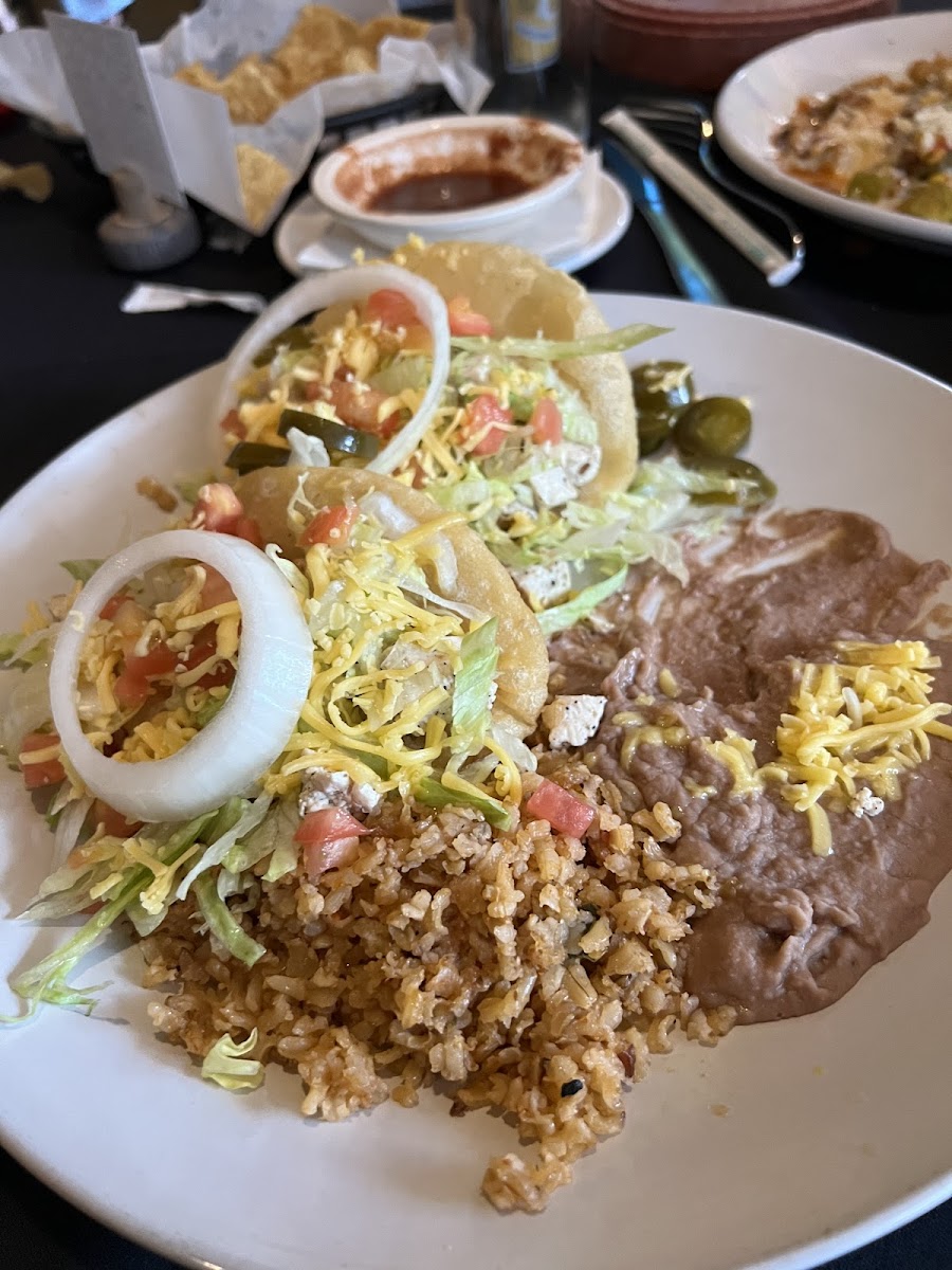 Really great Tex-Mex! The puffy tacos are one of their unique offerings! The patio is wonderful on a cool night, but might be a little toasty on a summer night. Chips and salsa are top notch!