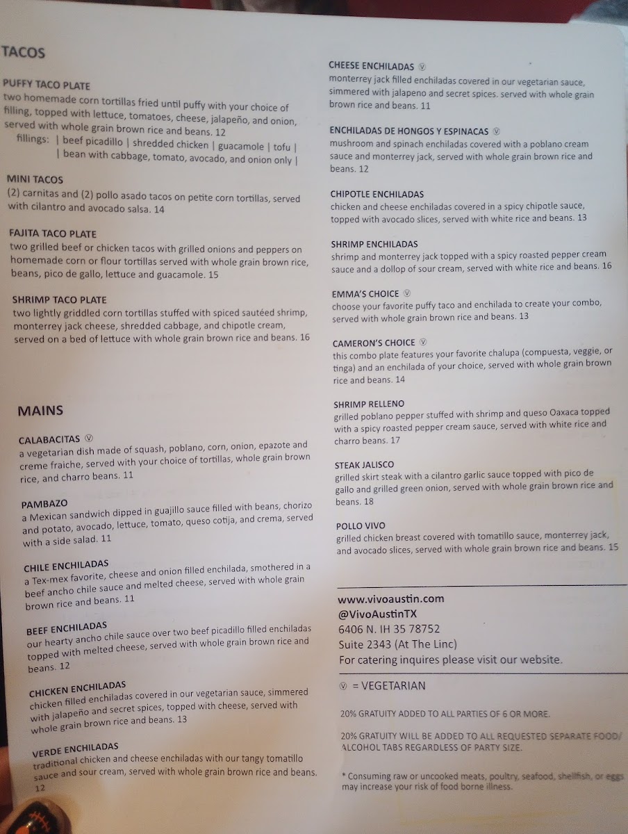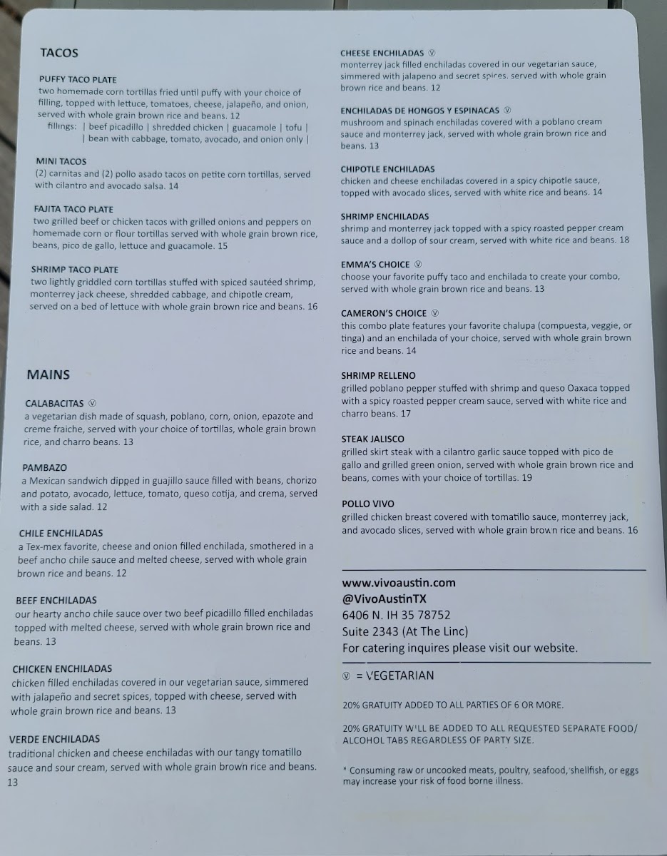 VIVO - Austin Menu